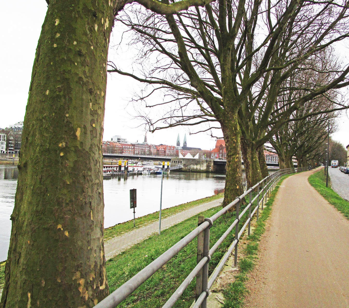 Das Gegenüber der Weserpromenade „Untere Schlachte“ auf der Neustadtseite. Verbreiterung der Promenade, Pflanzung von Bäumen, Ergänzung von Wegweisern und Infosäulen, sowie Bau und Restaurierung von Treppen und Geländern. Bauvolumen 1,1 Mio Euro
